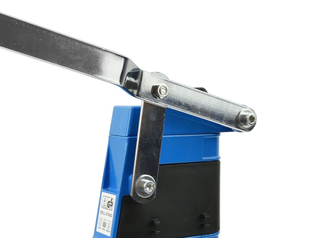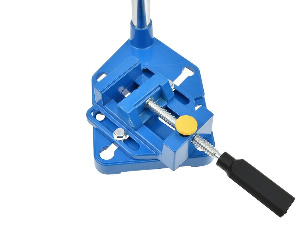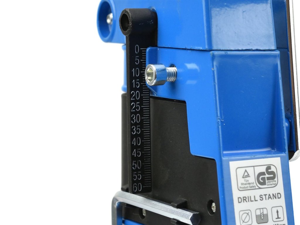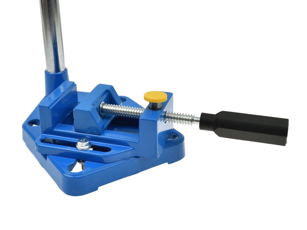 Stojan na vŕtačku so zverákom. Ľahká a pevná konštrukcia a pohodlná páka na ovládanie stojana zaručujú presnosť pri vŕtaní. Použitie univerzálneho nástavca na vŕtanie (Euronorm 43 mm) umožňuje namontovať do stojana prakticky akýkoľvek vrták.