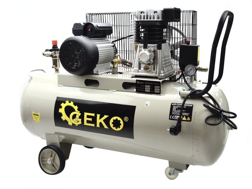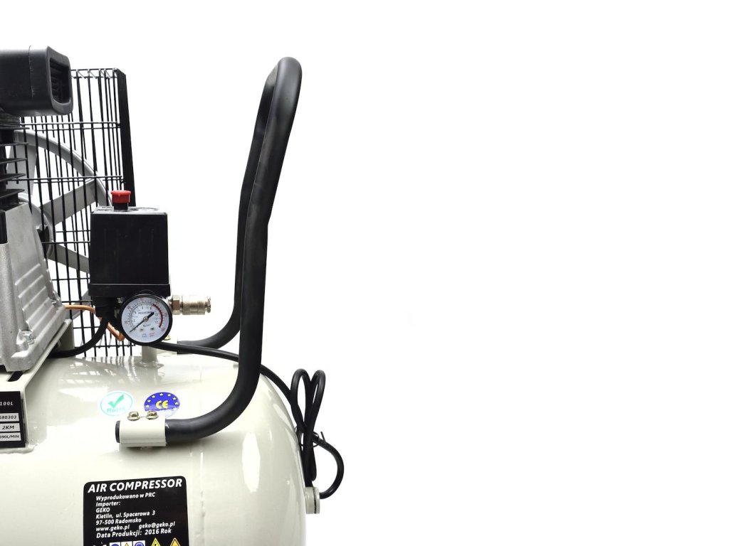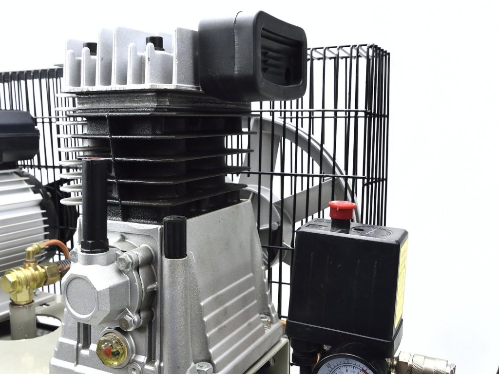 Olejový kompresor s výkonným motorom s výkonom 2 HP a objemom nádrže 100 litrov. Je vybavený reduktorom tlaku, ktorý umožňuje nastavenie hodnoty tlaku v nádrži.