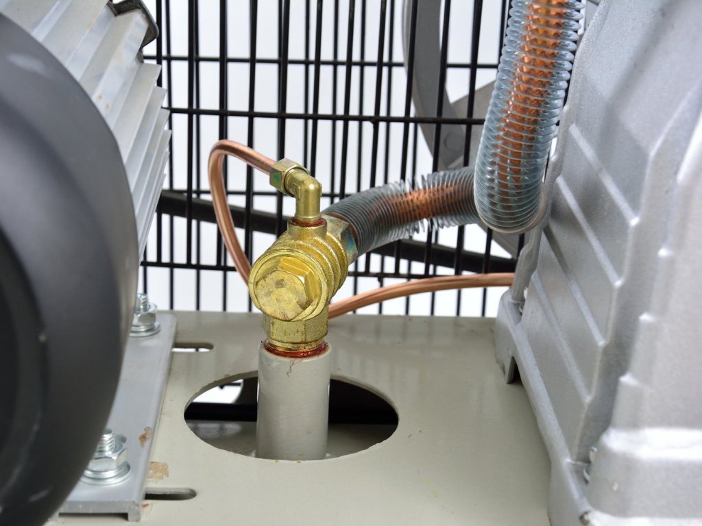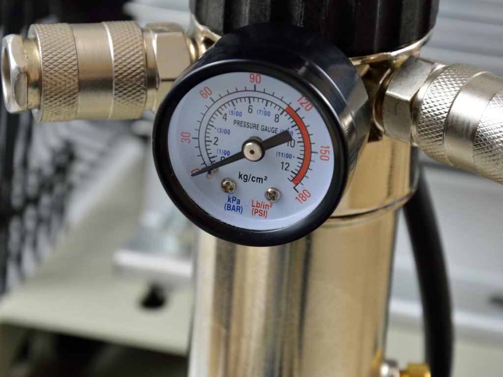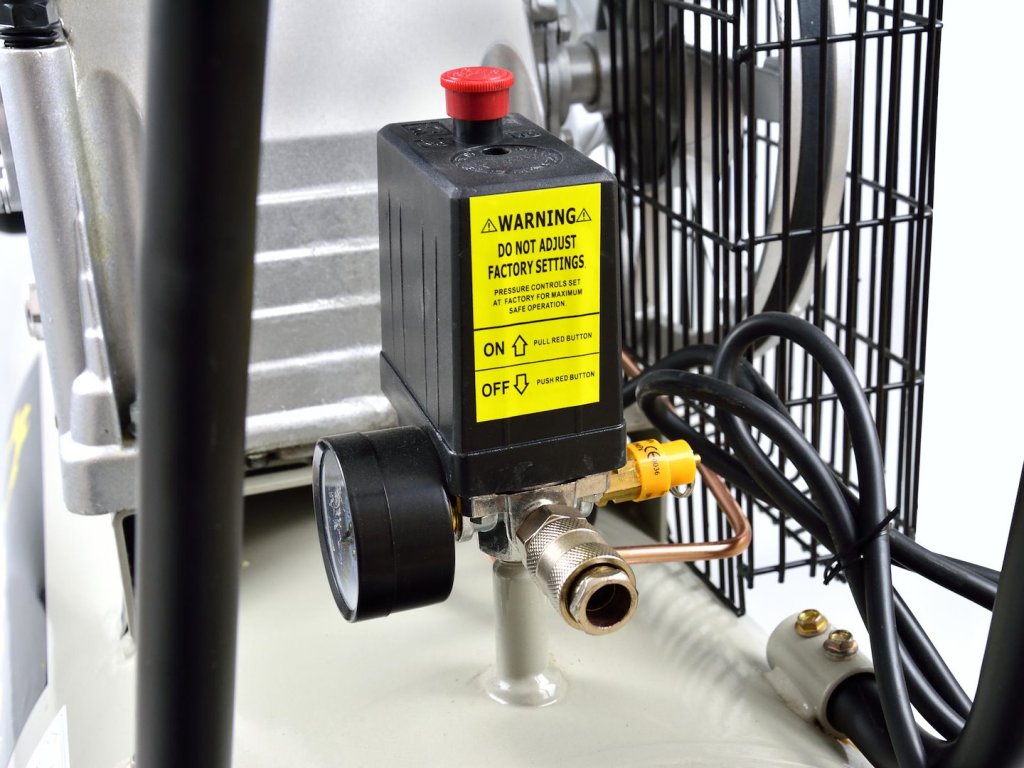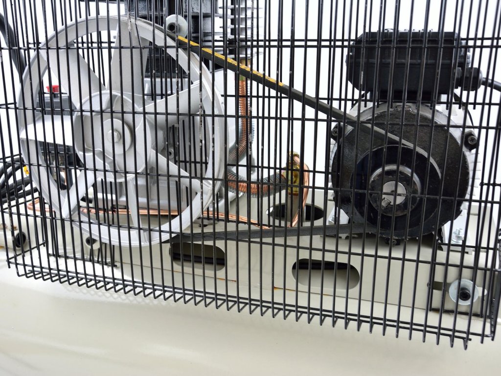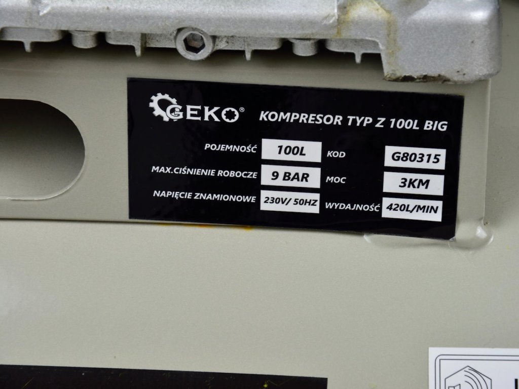 Olejový kompresor s výkonným motorom s výkonom 3 HP a objemom nádrže 100 litrov. Je vybavený reduktorom tlaku, ktorý umožňuje nastavenie hodnoty tlaku v nádrži. Dva piesty s väčším priemerom umožňujú dlhodobú prevádzku kompresora.