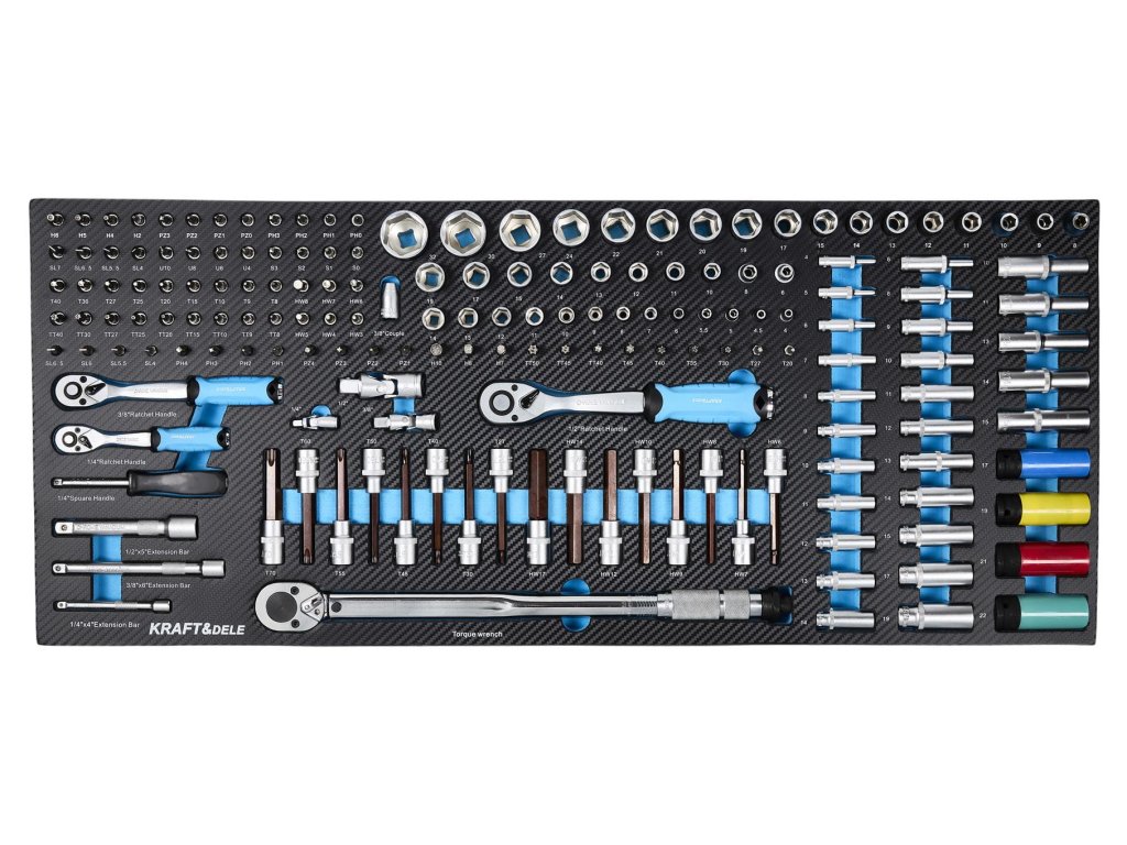 - Komplexný výber nástrčkových kľúčov a iných dielov