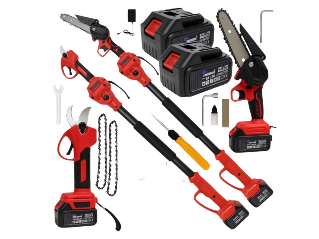 Akumulátorová píla 6″ + nožnice + teleskop do 4 m - 2× BIG Akku 1,5 Ah (sada XXXL)