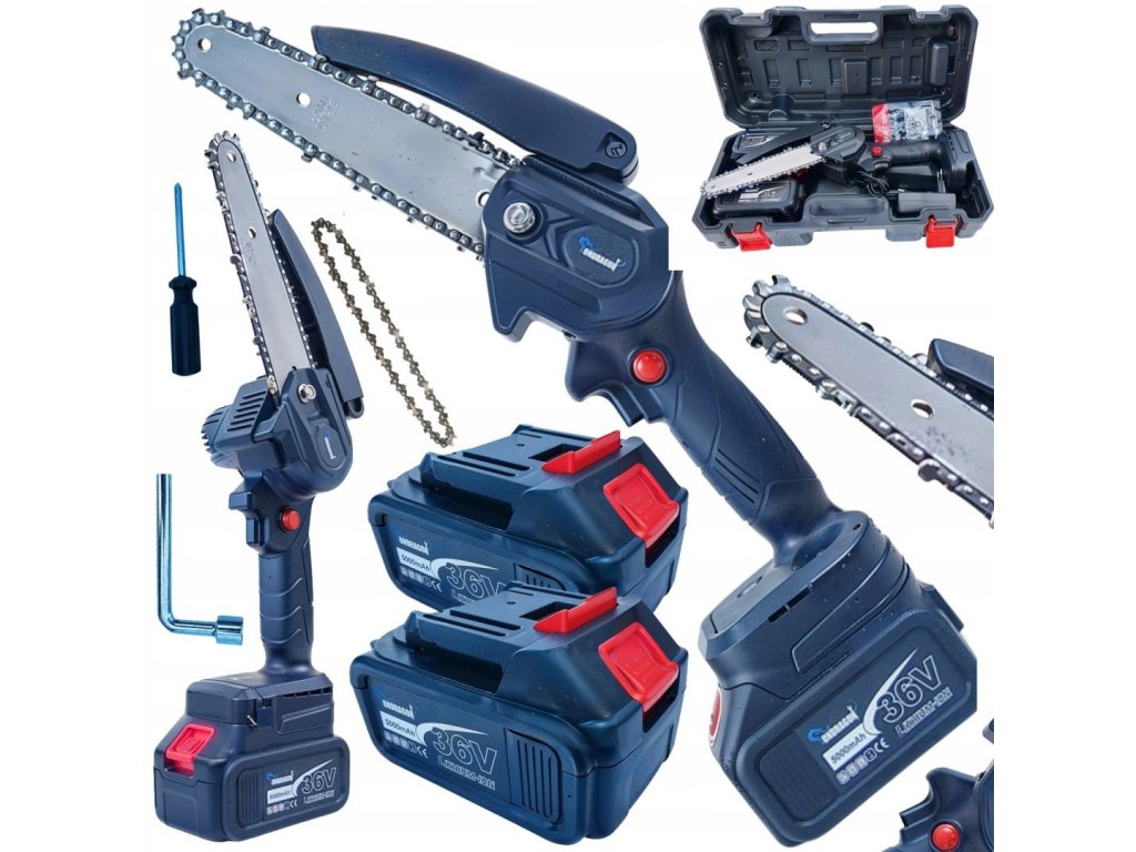 Praktická **aku minipíla** na rezanie konárov, dreva alebo drobné stavebné práce. Vďaka napájaniu z **36 V batérie** nie je potrebný kábel ani benzín. Kompaktná 6″ lišta (15 cm) umožňuje presné rezy a jednoduché ovládanie jednou rukou.