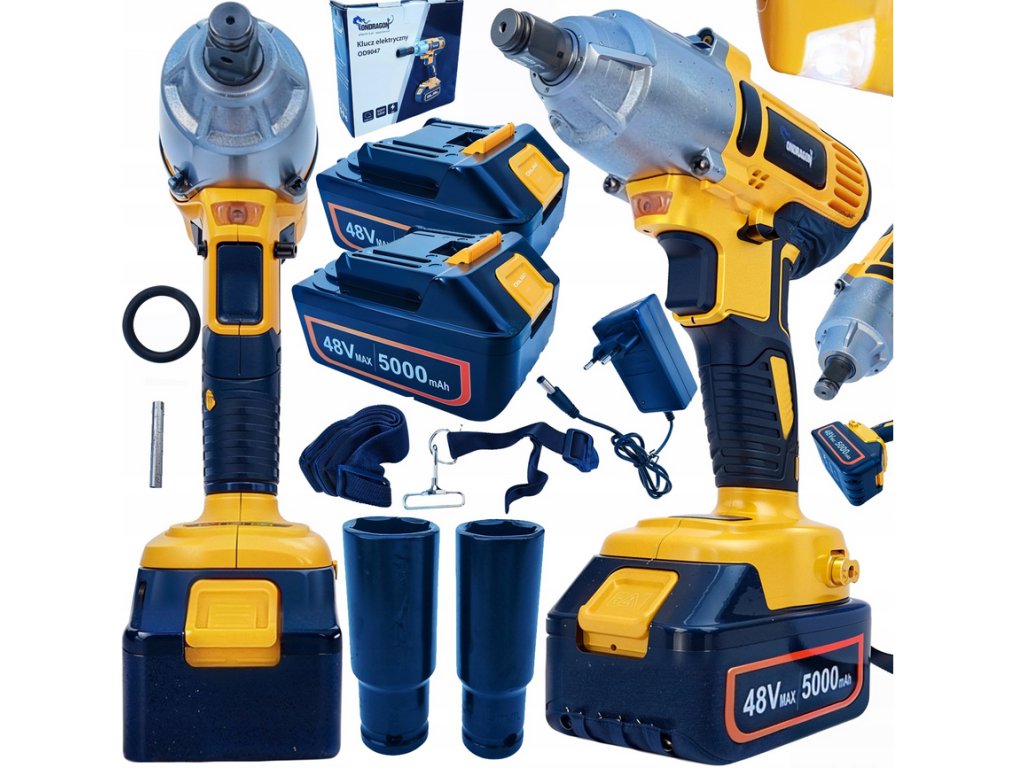 Akumulátorový rázový uťahovák 48V 1/2 380Nm 2x batéria - výkonný nástroj na rýchle a efektívne skrutkovanie bez káblov.
