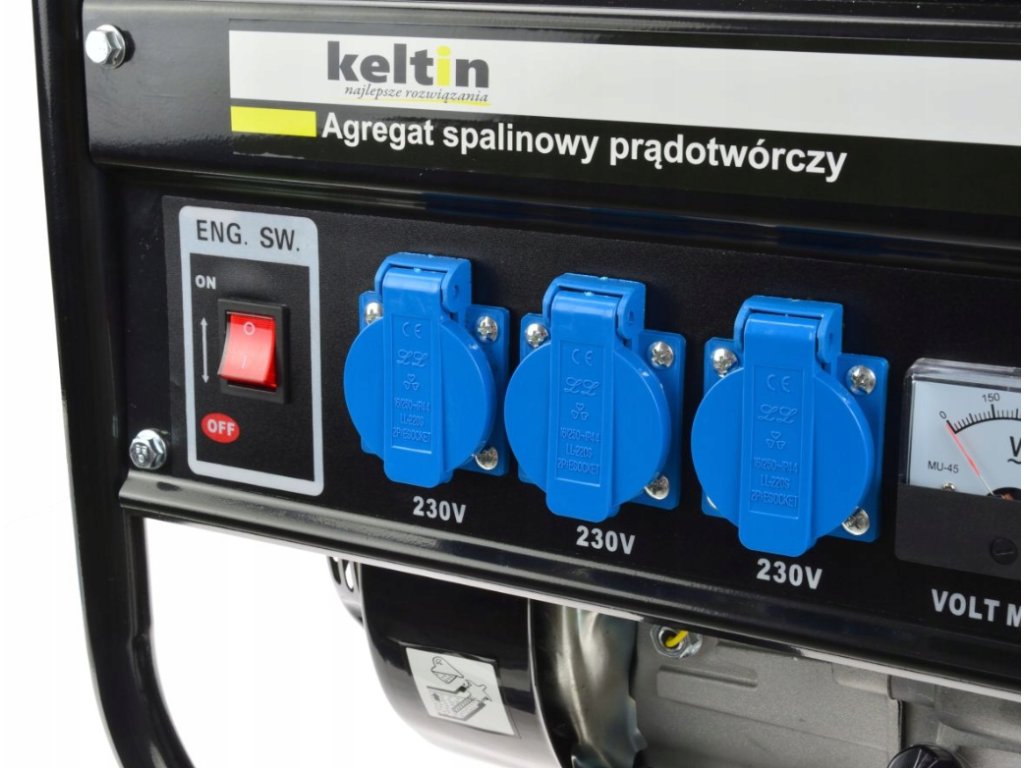Elektrický generátor poháňaný 4-taktným motorom s výkonom 6,5 Hp. Čas prevádzky na jednu nádrž je cca. Elektropanel je vybavený jednou zásuvkou 380 V + tromi zásuvkami 230 V + 12 V a poistkou.