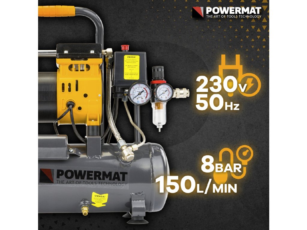 Kompresor vhodný na domáce aj profesionálne použitie. Vďaka bezolejovej prevádzke a hlučnosti iba 59 dB je ideálny na použitie v interiéri. S výkonom 150 l/min a tlakom 8 barov zvládne plnenie pneumatík, fúkanie a pohon menších nástrojov.Vďaka kompaktným rozmerom a tichej prevádzke je ideálnou voľbou aj na servis počítačových zariadení, elektroniky alebo čistenie jemného vybavenia.