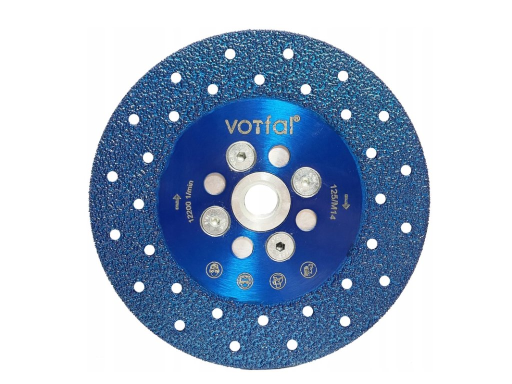 Vysokokvalitný diamantový kotúč s priemerom 125 mm a univerzálnym závitom M14 je určený na použitie s uhlovými brúskami. Ideálna voľba na presné brúsenie keramických materiálov, najmä gresu. Na dosiahnutie maximálnej životnosti odporúčame brúsenie za sucha a používanie uhlovej brúsky s reguláciou otáčok.