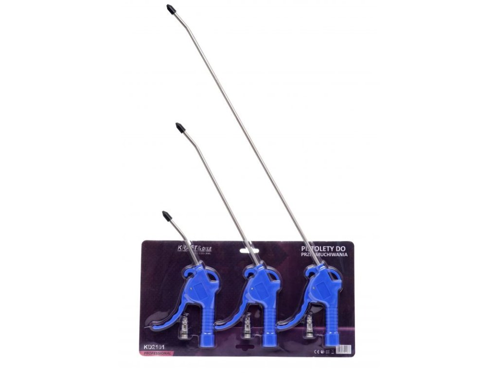 Ak potrebujetedôkladné čistenie na ťažko prístupných miestach, máme pre vás riešenie!Súprava fúkacích pištolí Kraft & Dele KD2101 je tu, aby vám uľahčil prácu. Použitepohodlie a účinnosť rýchlospojky 1/4", ktoré vás nesklamú. Čo nájdete v súprave?
