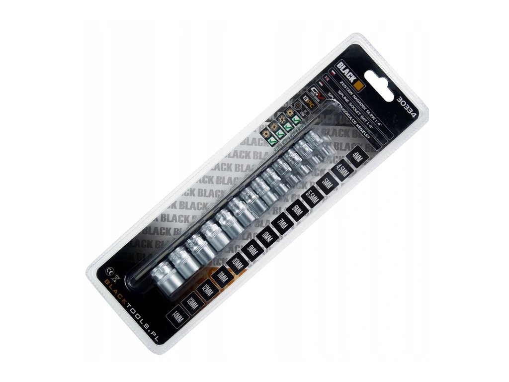 Vynikajúca sada 13 nástrčných kľúčov 1/4 BLACK vo veľkostiach (od 4 do 14 mm). Vďaka guľovému tvaru nástrčných hlavíc je celok veľmi univerzálny a umožňuje odskrutkovať skrutky Torx, Spline, 12-hranné, metrické, palcové a štvorhranné.