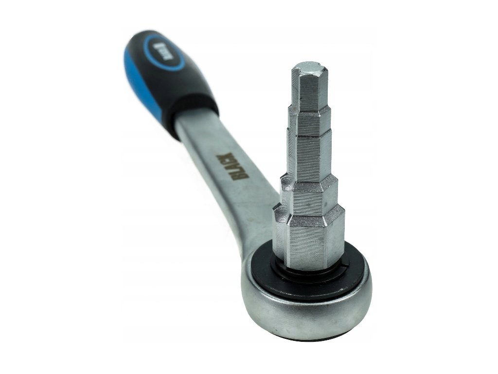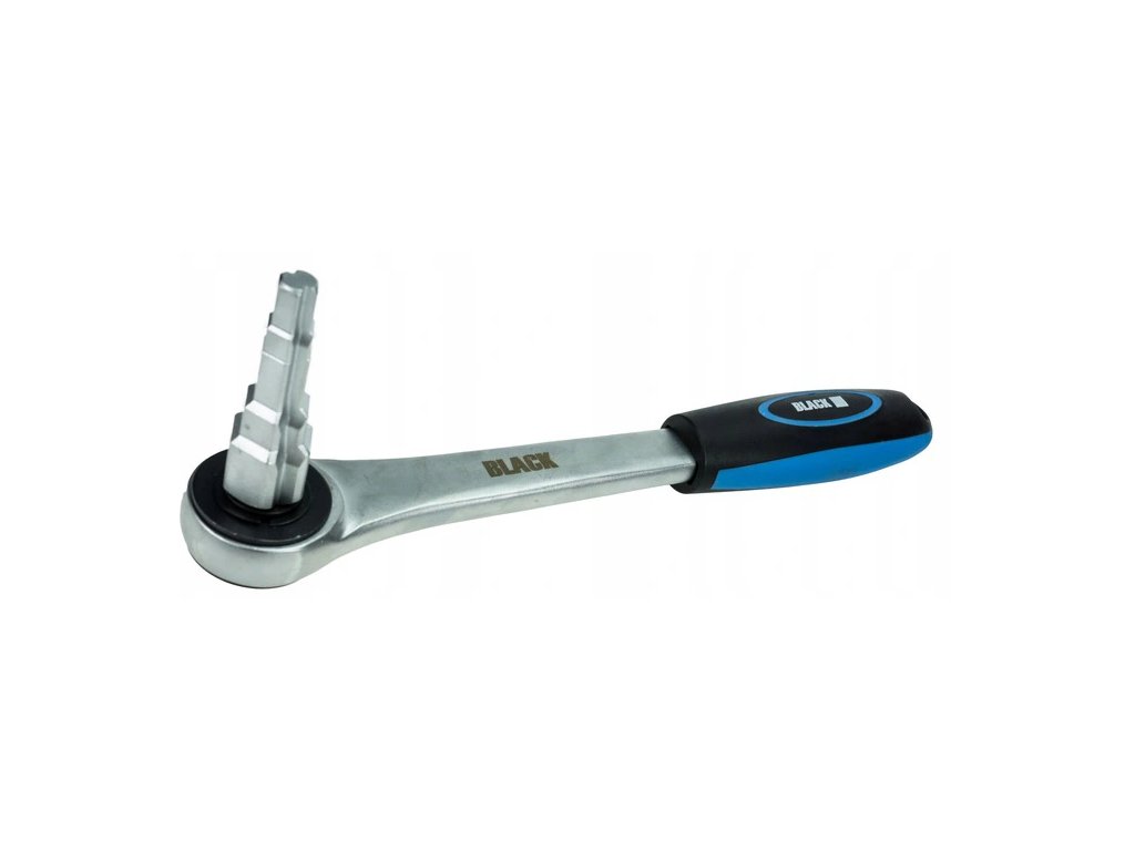 Oceľová račňa CRV s rohatkovým mechanizmom s pevnou a odolnou konštrukciou a protišmykovou rukoväťou zvyšuje pohodlie pri práci.