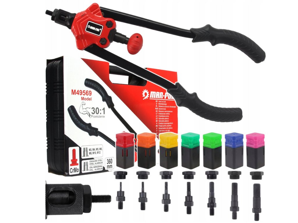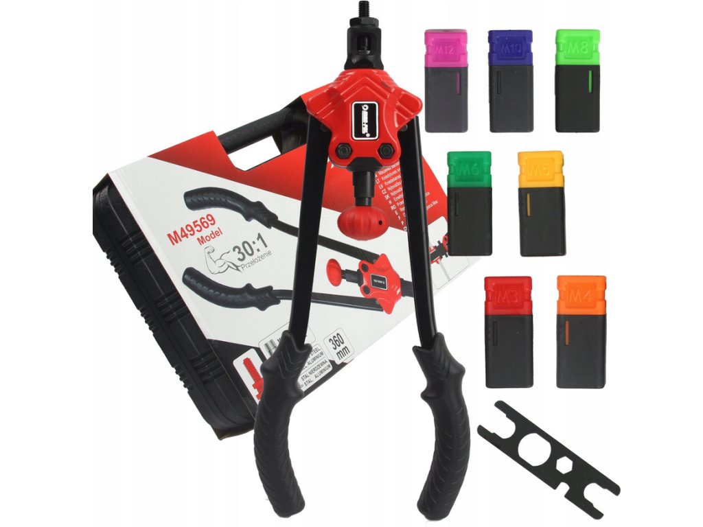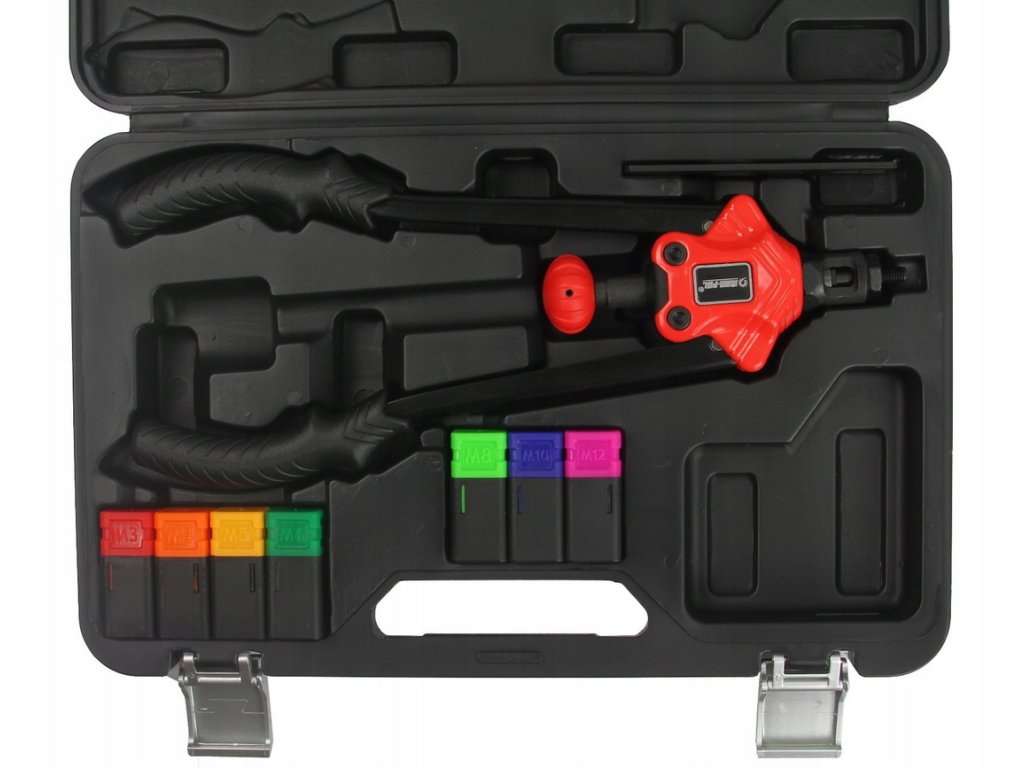 Kliešte na nitovacie matice M3-M12 (M49569) sú praktickým nástrojom na rýchle a pevné nitovanie závitových spojov v rôznych materiáloch. 🔩