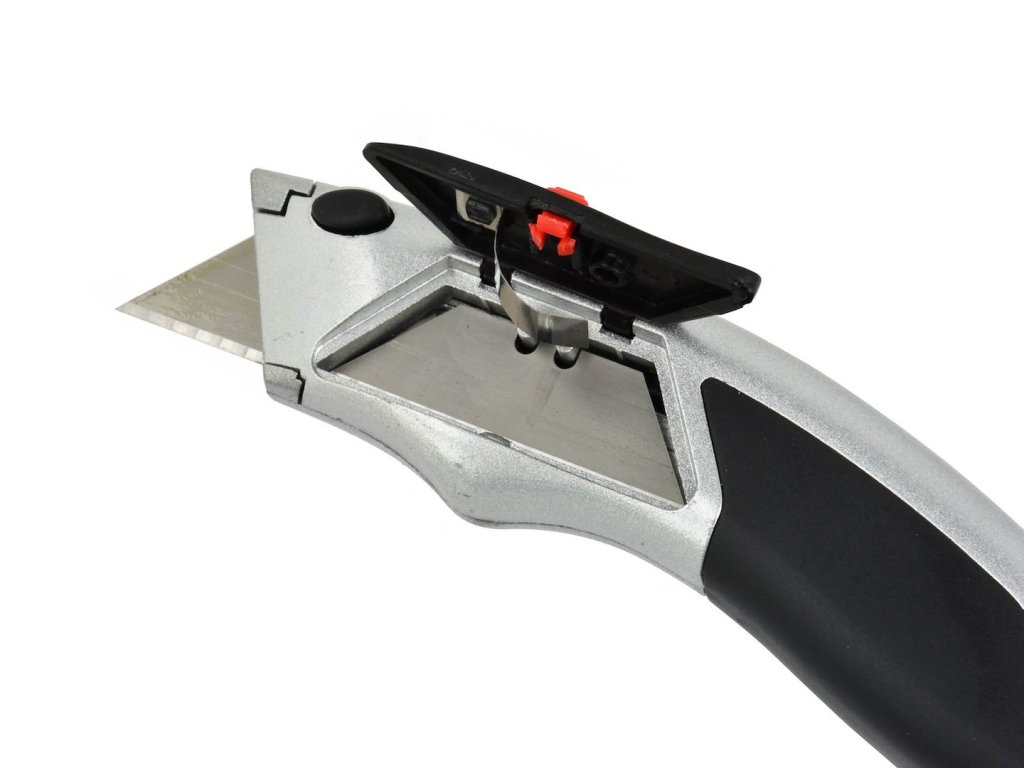 Univerzálny nôž s lichobežníkovou čepeľou 19 mm. Nôž je vyrobený z hliníka, rukoväť je tvarovaná a potiahnutá protišmykovou gumou. Nôž je vybavený zásobníkom na čepeľ. Po opotrebovaní jednej čepele a vložení vodidla sa automaticky vloží ďalšia čepeľ.
