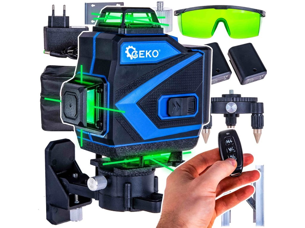 Laserová vodováha 4D Geko je pokročilý merací nástroj, ktorý sa používa na presné určenie horizontálnych, vertikálnych a šikmých čiar v rozsahu360 °. Vďaka4 lietadlá (2 horizontálne a 2 vertikálne) a16 laserových línií umožňuje súčasné zobrazenie čiar v rôznych smeroch, čo výrazne uľahčuje stavebné, renovačné a dokončovacie práce. Tento model je vybavenýzelený laserový lúč, ktorý sa vyznačuje lepšou viditeľnosťou ako tradičný červený laser, a to aj vo svetlých miestnostiach alebo na veľké vzdialenosti (až do40 m).