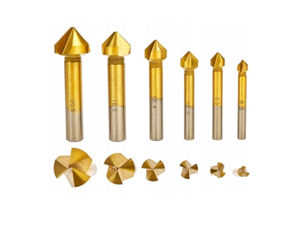 Sada záhlbníkov s rozmermi (dĺžka x šírka stopky x šírka kužeľa - v mm):