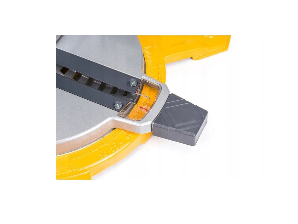 Otočná základňa píly je vybavená uhlovou stupnicou a plôtikom s prehľadným pravítkom. Základňa je vyrobená z tlakovo liateho hliníka, takáto konštrukcia je odolná voči deformácii počas prevádzky. Plot má vyfrézované pravítko, vďaka ktorému je značenie jasné a časom sa neporušuje.