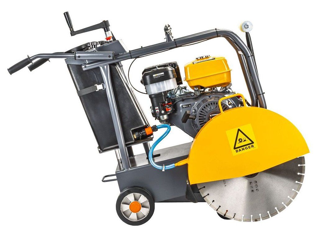 Čtyřtaktní benzínový motor s výkonem 14 koní zajišťuje efektivní a rychlé řezání asfaltu.