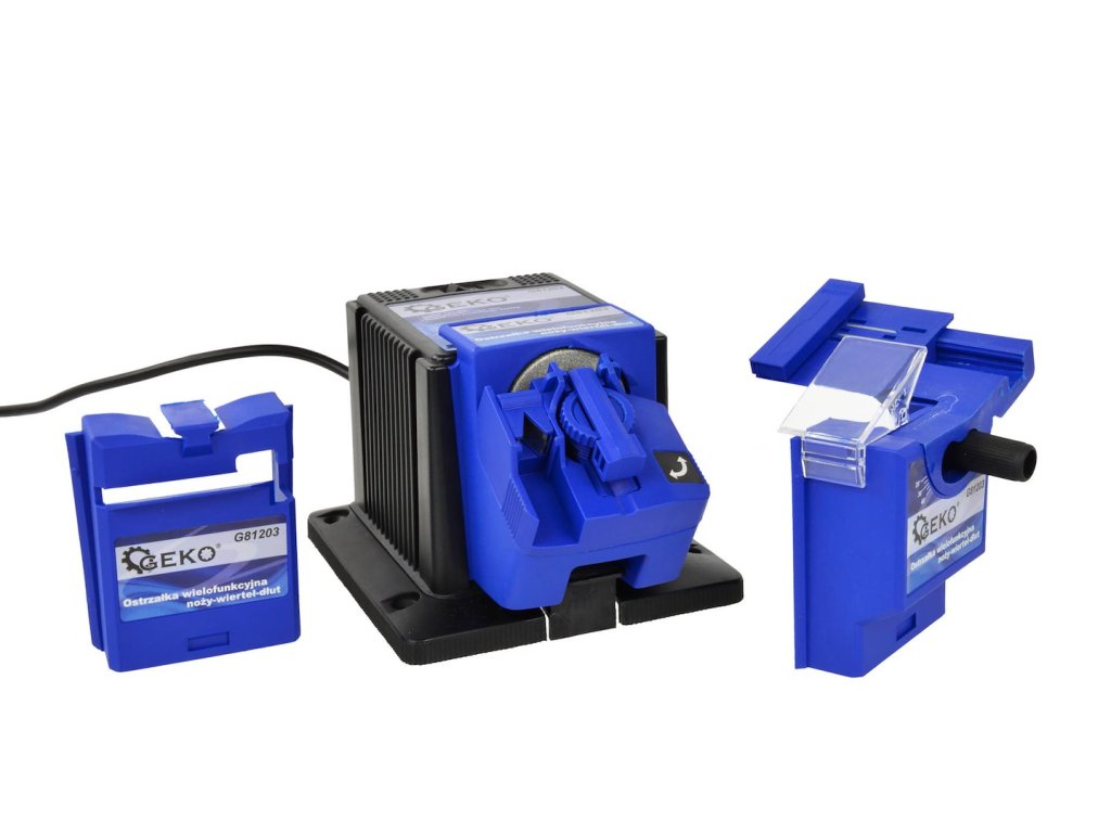 - Táto multifunkčná brúska je praktický a všestranný nástroj, ktorý umožňuje brúsenie vrtákov HSS, nožov a nožníc pomocou vymeniteľných nástavcov