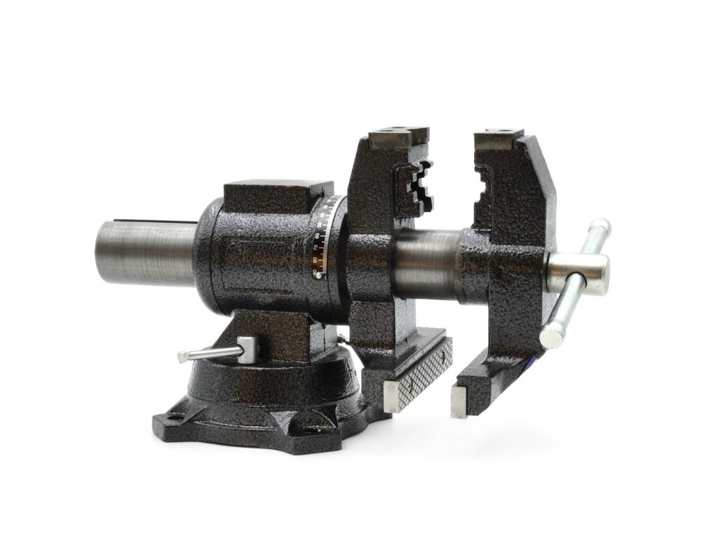 Multifunkčný zverák s 360° rotáciou vo vertikálnej a horizontálnej polohe, čo z neho robí veľmi všestranný nástroj.