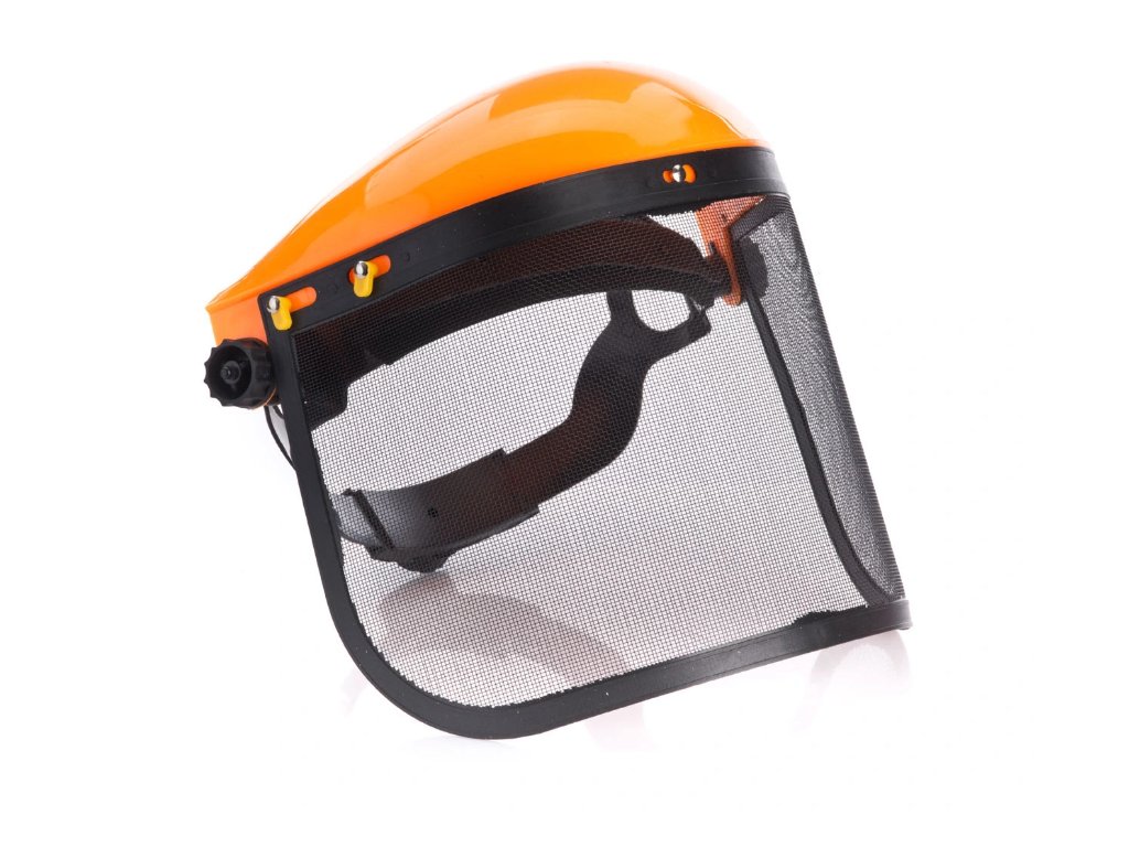 Sieťový štít na tvár určený pre zamestnancov, ktorí manipulujú s nástrojmi, ako sú píly, kosy atď., kde sa vyžaduje ochrana tváre pred striekajúcou vodou a úlomkami.