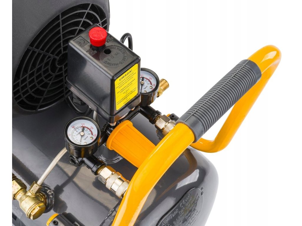 Tlakový spínač vypne kompresor, keď dosiahne8 bar a znovu sa zapne, keď tlak klesne pod6 bar