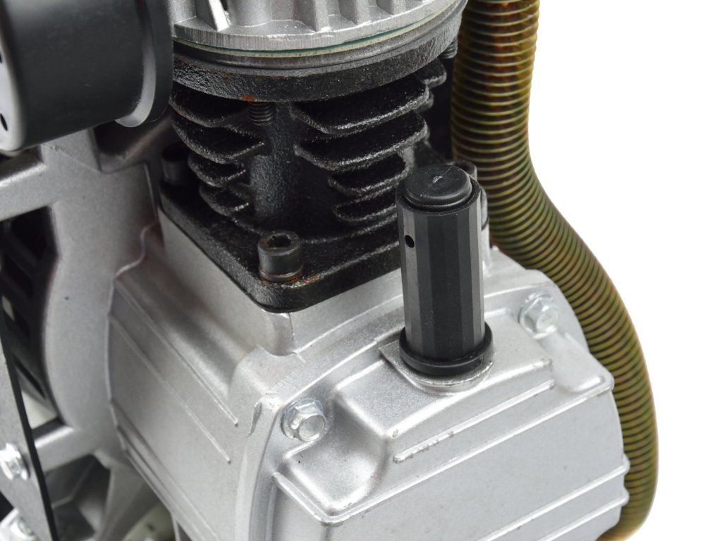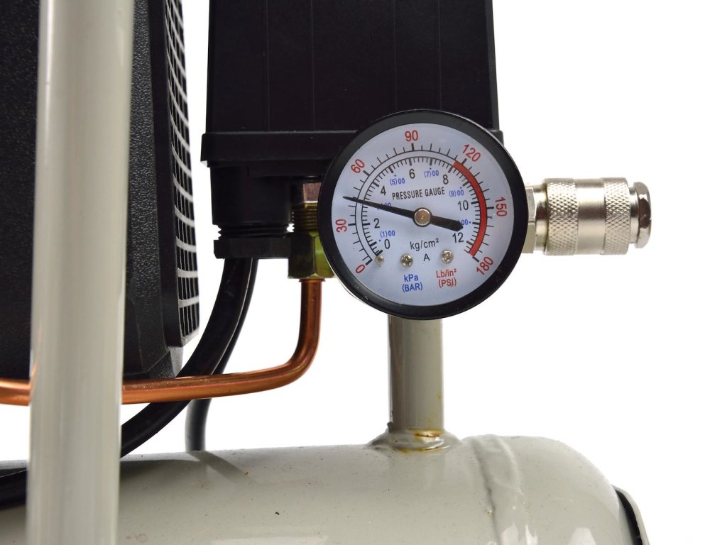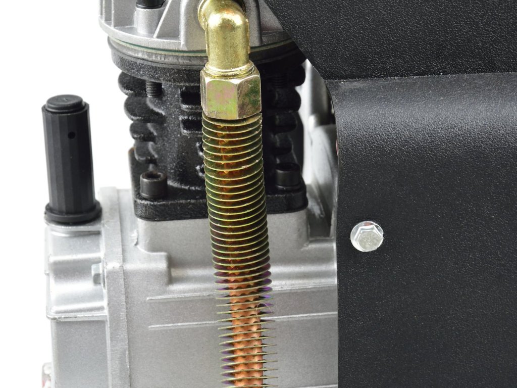Olejový kompresor s výkonným motorom s výkonom 1 HP a objemom nádrže 8 litrov. Vybavený redukčným ventilom, ktorý umožňuje nastavenie hodnoty tlaku v nádrži.