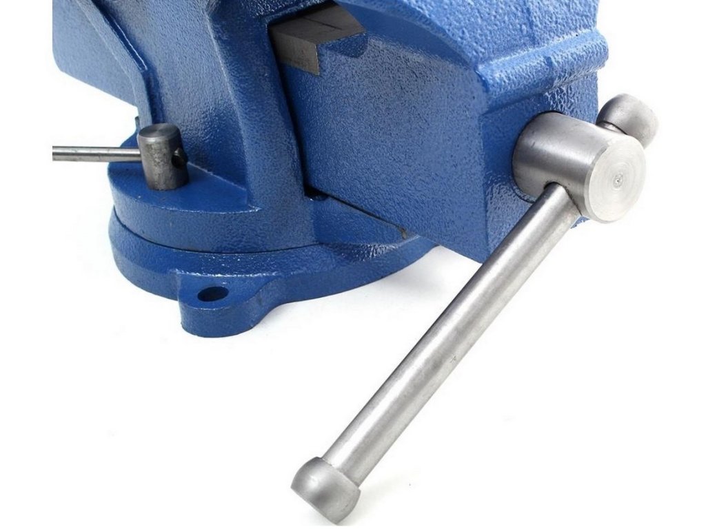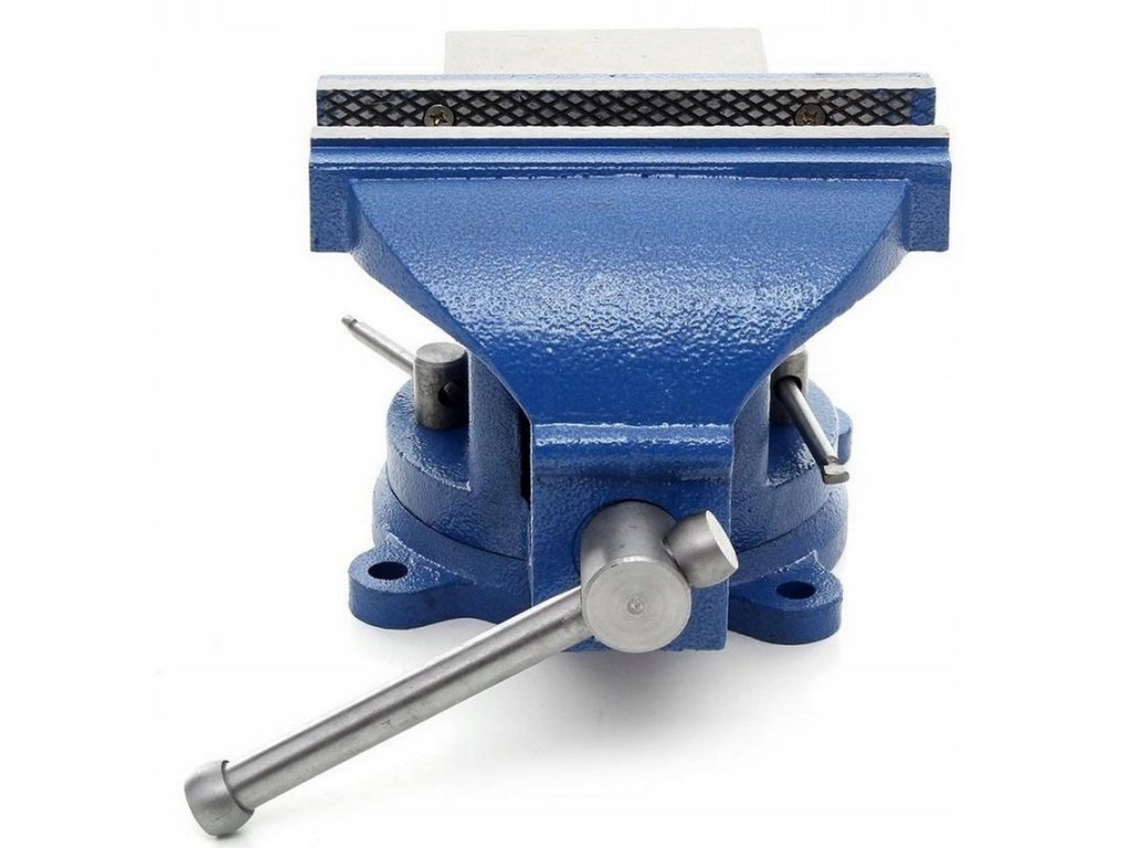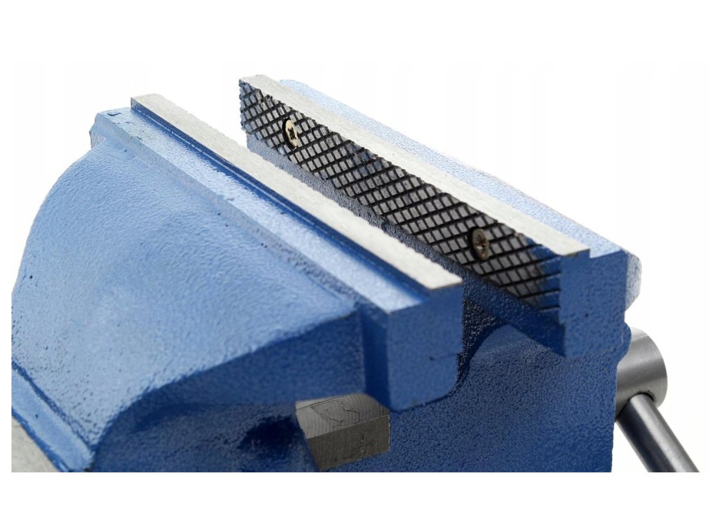Rotačný zámočnícky zverák vyrobený z vysokokvalitných materiálov. Oceľové čeľuste zveráka s protišmykovými priečnymi rezmi, dodatočne kalené