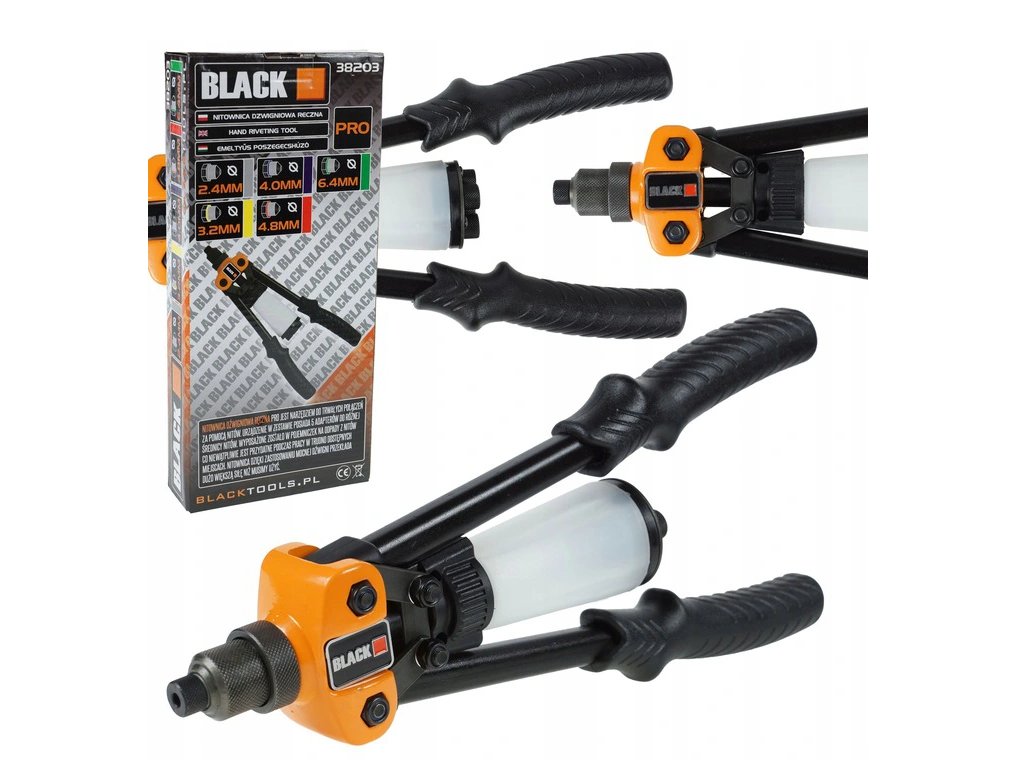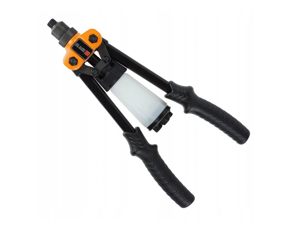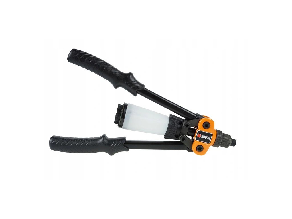 . Ťahací mechanizmus má tri čeľuste. Vďaka vhodnej hrúbke steny a správne zvolenej dĺžke ramena používame nitovací nástroj bez použitia veľkej sily. Nádoba na odlomené jadrá nitov udržiava pracovisko čisté.