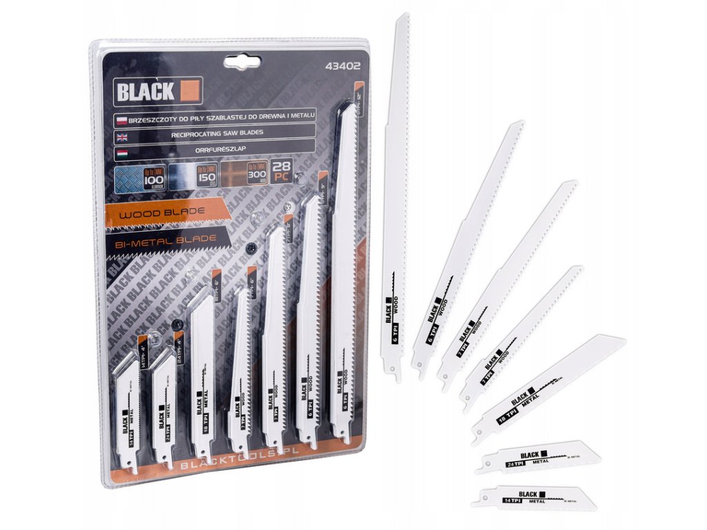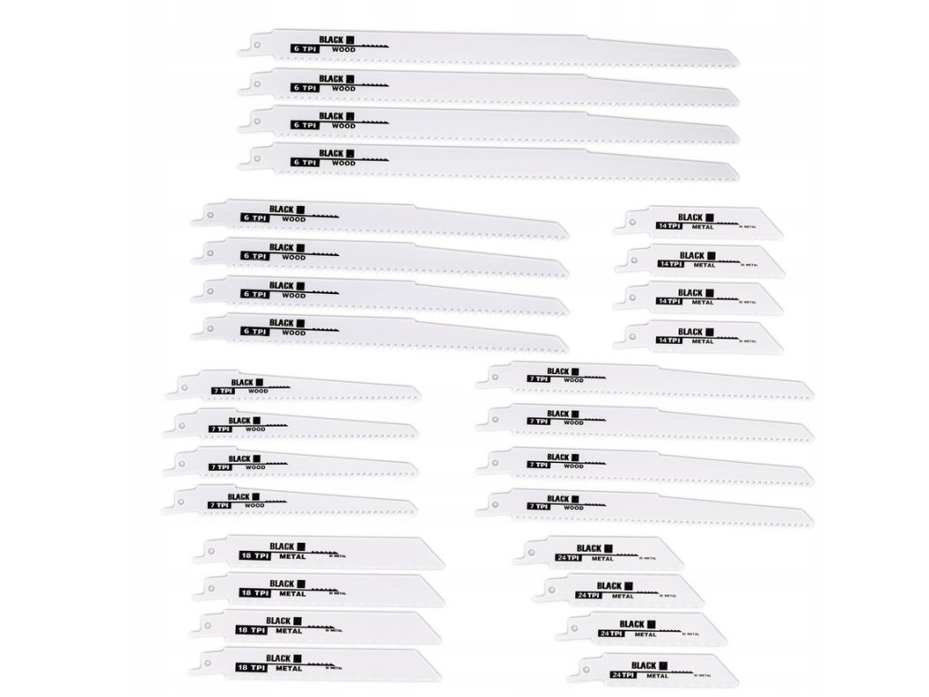 - sada pílových listov s priamym pohybom na rezanie dreva, drevotriesky, drevotriesky, kovu atď.