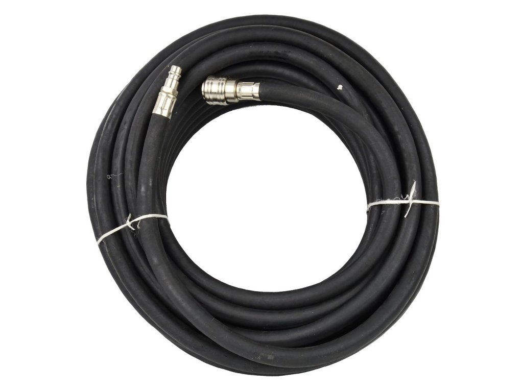 Profesionálna pneumatická gumová hadica s dĺžkou 20 metrov. Hadica je vyrobená z gumy odolnej voči oleju a oderu. Pružná guma zabraňuje trvalej deformácii. Hadica je kompletná, vybavená štandardnou rýchlospojkou a zátkou.