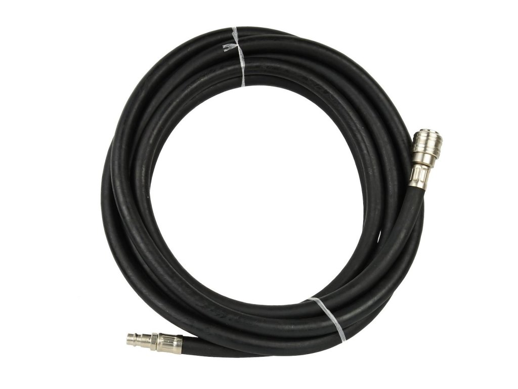 Profesionálna pneumatická gumová hadica s dĺžkou 5 metrov. Hadica je vyrobená z gumy odolnej voči oleju a oderu. Pružná guma zabraňuje trvalej deformácii. Hadica je kompletná, vybavená štandardnou rýchlospojkou a zátkou.