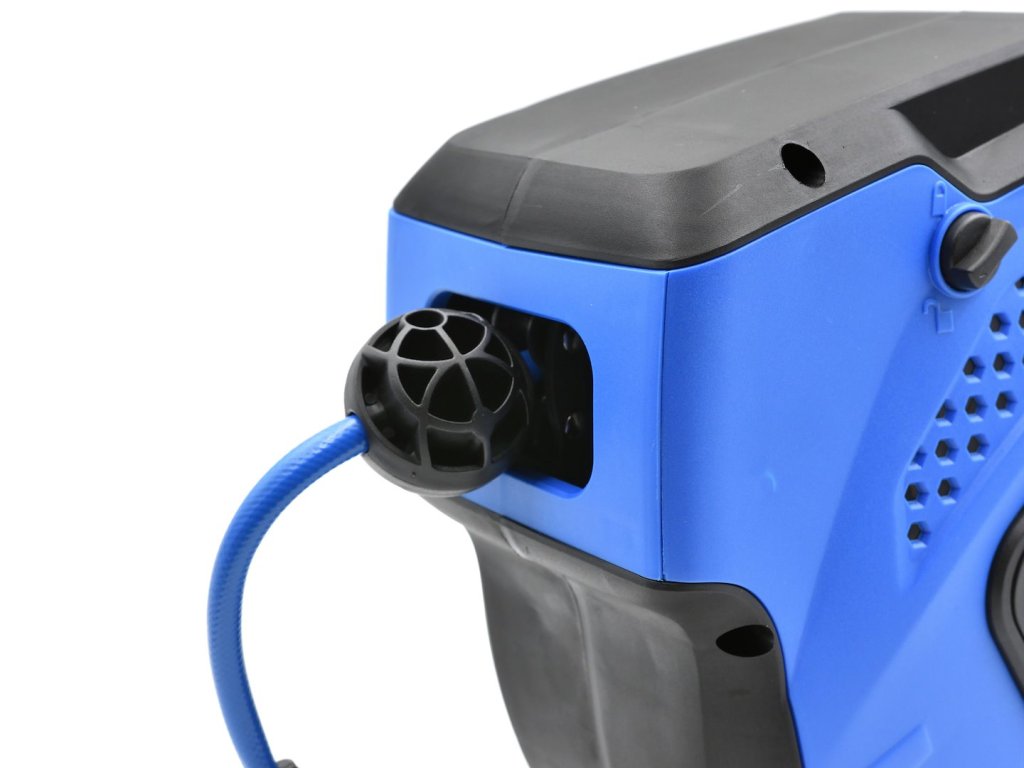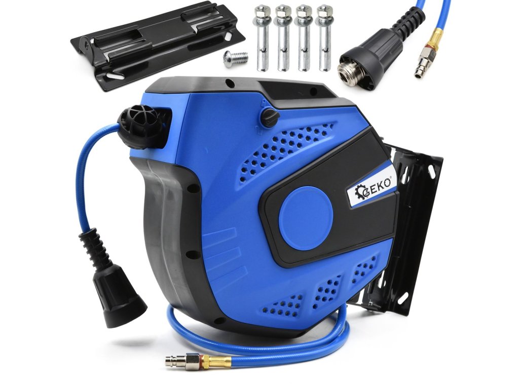 Pneumatická hadica na cievke vyrobená z vysokokvalitného vystuženého PVC. Vyznačuje sa vysokou odolnosťou voči vysokému tlaku. Navijak je vybavený zámkom, ktorý zabraňuje samovoľnému navíjaniu hadice , a závesom, ktorý umožňuje zavesenie hadice na stenu.