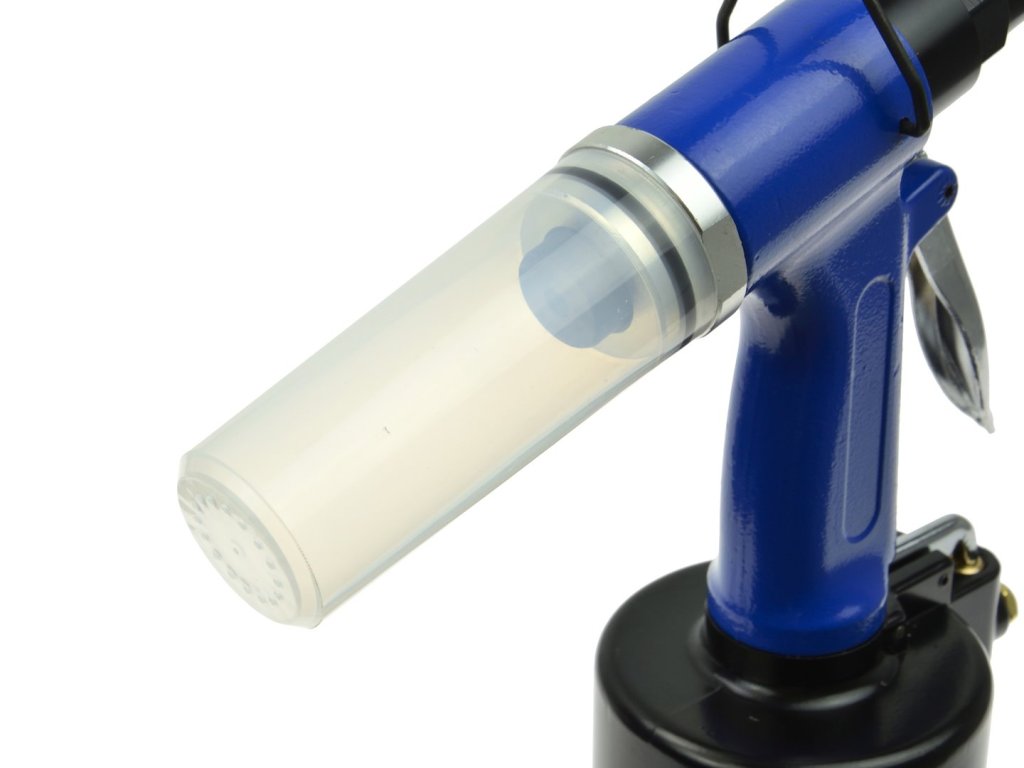Je vybavená nádobou, do ktorej sa zhromažďuje odpad vznikajúci pri nitovaní.