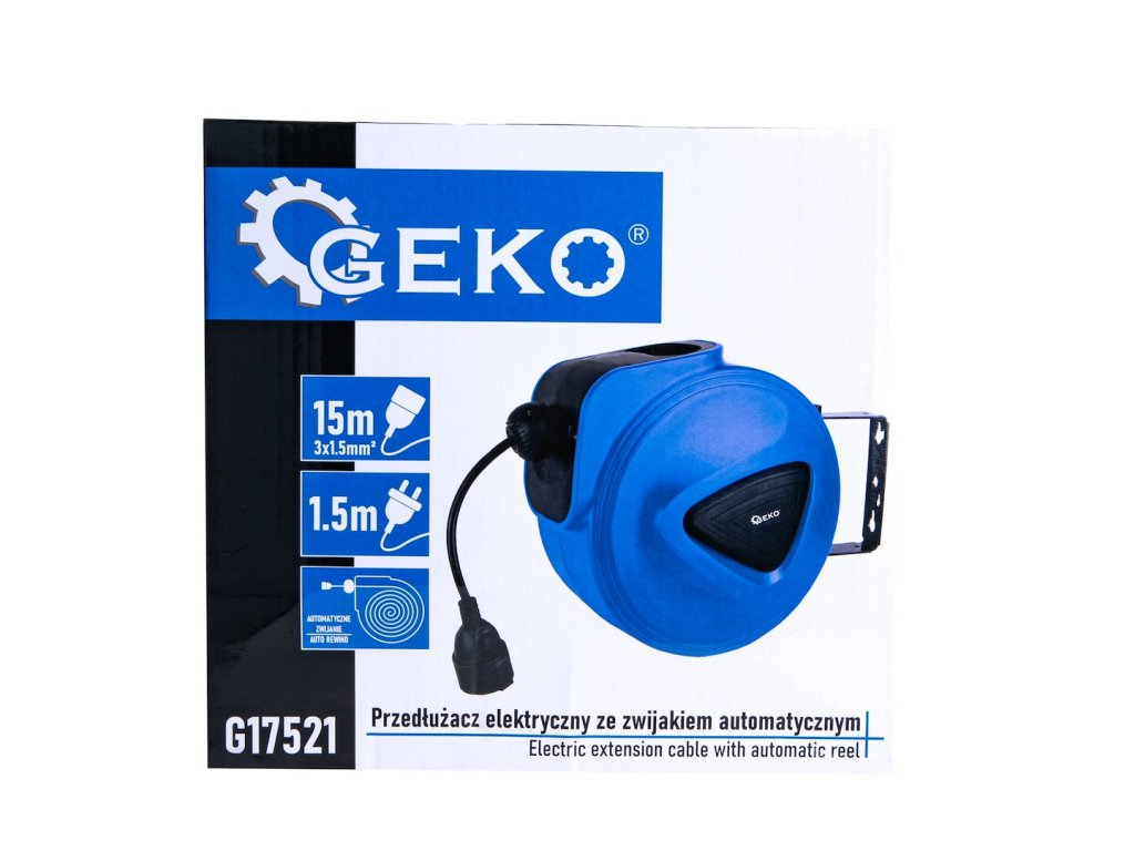 Elektrický predlžovací kábel Geko s automatickým navíjaním je ideálny pre dielne, sklady, výrobné haly alebo staveniská, ale aj pre garáže a domácnosti. Vďaka svojim praktickým vlastnostiam a odolnej konštrukcii sa osvedčí v každej situácii, keď je potrebné..