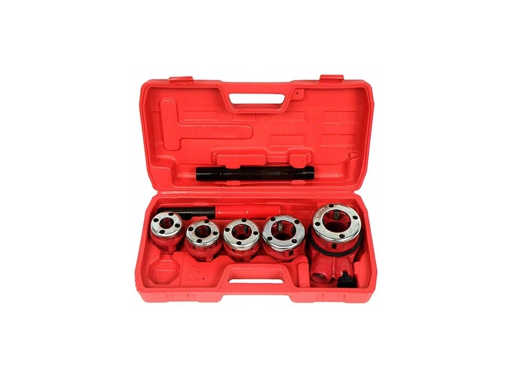 Závitníky v palcovej sústave určené na rezanie závitov na potrubí. Sada obsahuje 6 liatinových závitníkov so 4 nožmi z nástrojovej ocele, račňovú hlavu a dvojdielnu rukoväť. Všetko uložené v plastovom kufríku.