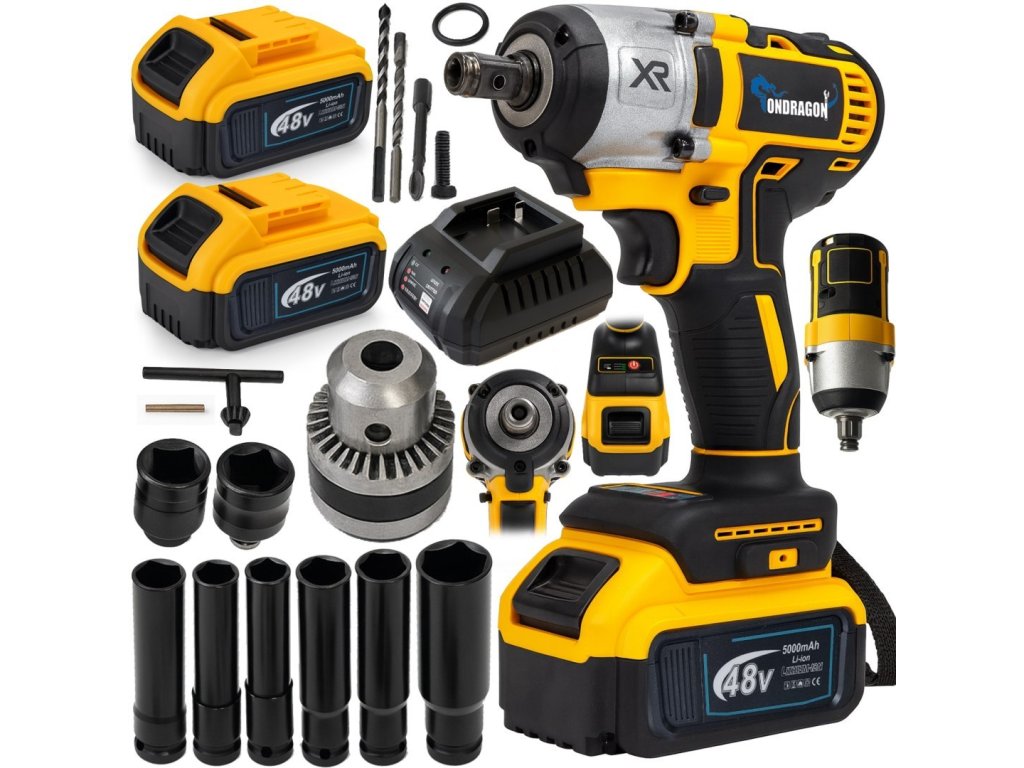 Rázový uťahovák ONDRAGON 48 V 1/2″ - 550 Nm, 2× batéria (2v1)