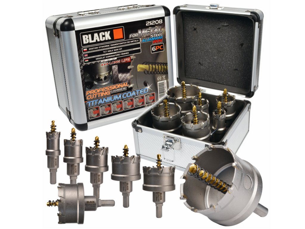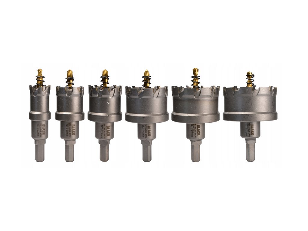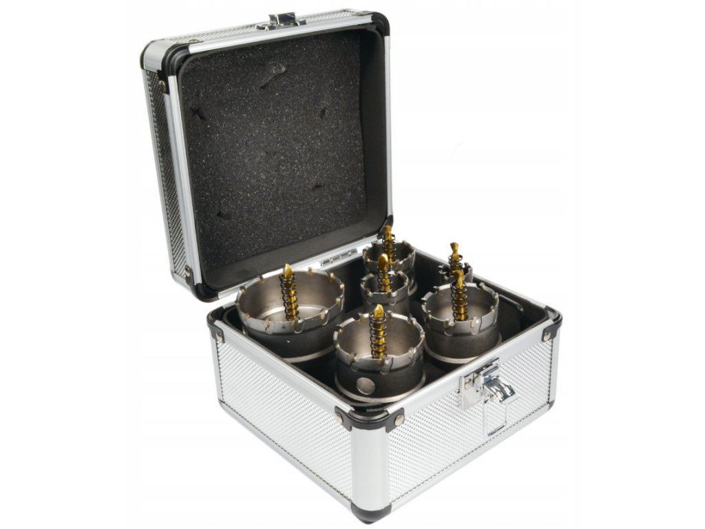 - Táto sada obsahuje 6 korunkových vrtákov na vŕtanie veľkých otvorov do kovových materiálov
