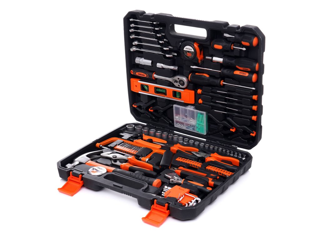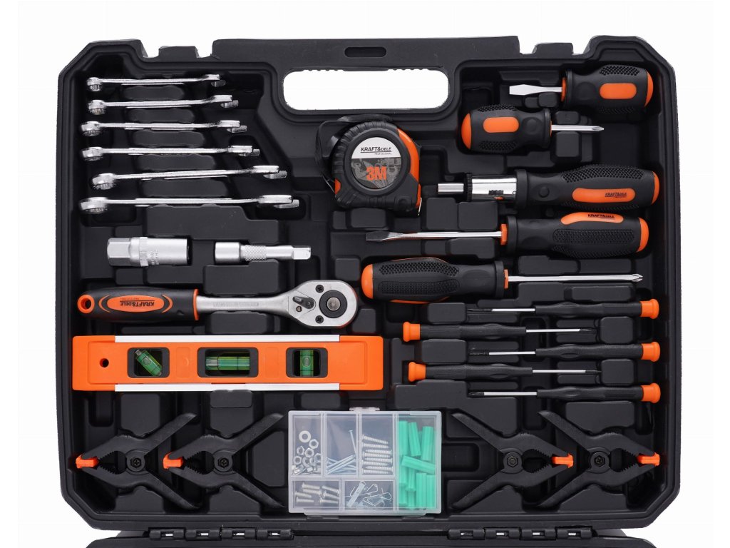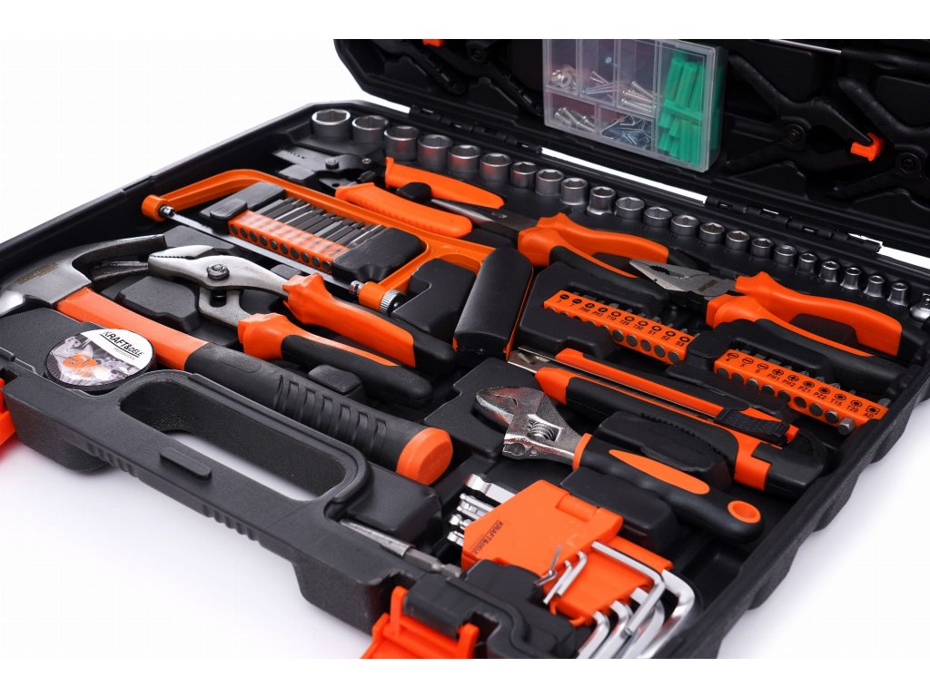 Komplexná sada nástrojovKraft & Dele KD10837 obsahuje **168 dielov** - ideálne pre dielňu, údržbu a domácich majstrov. Náradie je vyrobené z odolnej chróm-vanádiovej (CrV) ocele pre väčšiu odolnosť a dlhú životnosť. Praktický plastový kufrík s rukoväťou zabezpečuje prehľadné a bezpečné usporiadanie všetkých dielov.