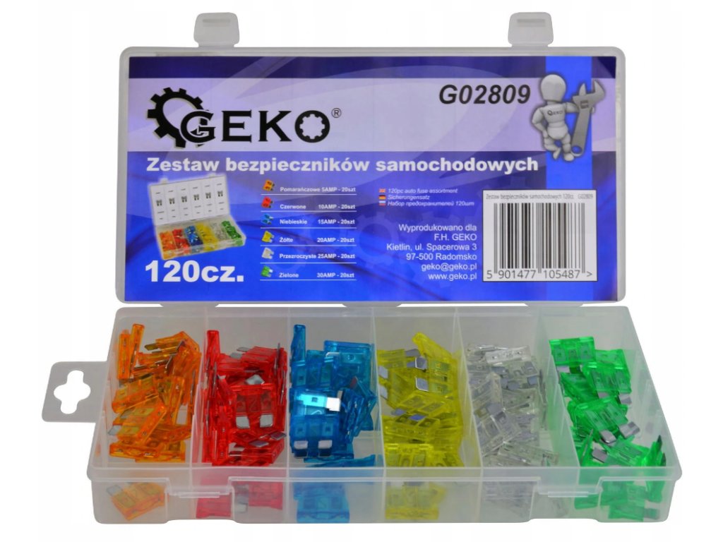 - Sada 120 mini automobilových poistiek s menovitým prúdom od 5 A do 30 A