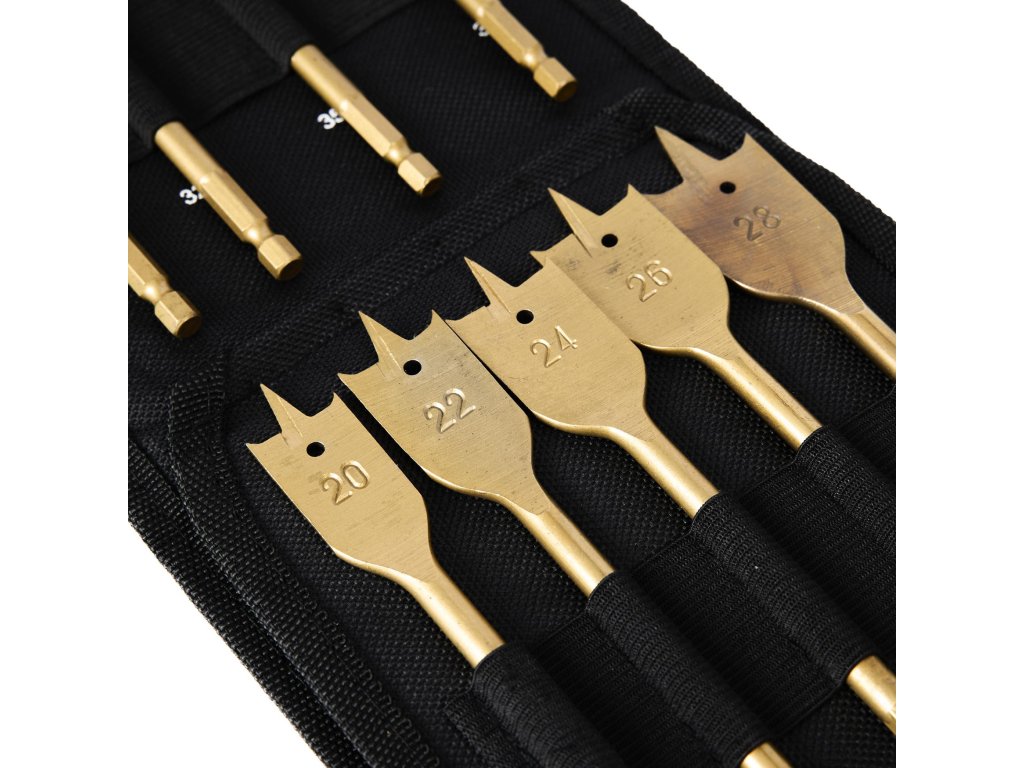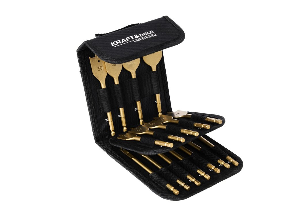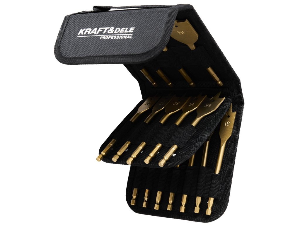 Súprava plochých vrtákov KraFt&Dele KB10637 je presne to, čo potrebujete na každodennú prácu s drevom.Kvalitná uhlíková oceľ zaručuje trvanlivosť, takže vydrží roky. Rozsah veľkostí od 6 mm do 38 mm sa prispôsobí každému projektu.Šesťhranná stopka zabraňuje rotácii počas vŕtania. V balení nájdete aj praktickýprípad pre prehľadnosť a jednoduché skladovanie.