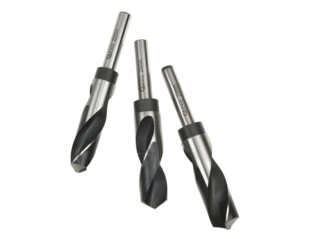 - Sada 3 vrtákov do kovu GEKO. Vrtáky s veľkosťou 22, 24 a 25 mm.