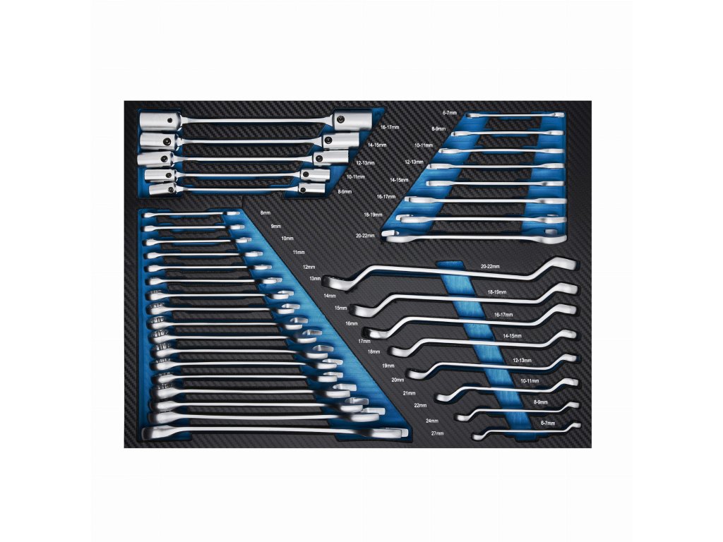 - Tretia zásuvka: obratné, otvorené, očkové a kombinované kľúče.