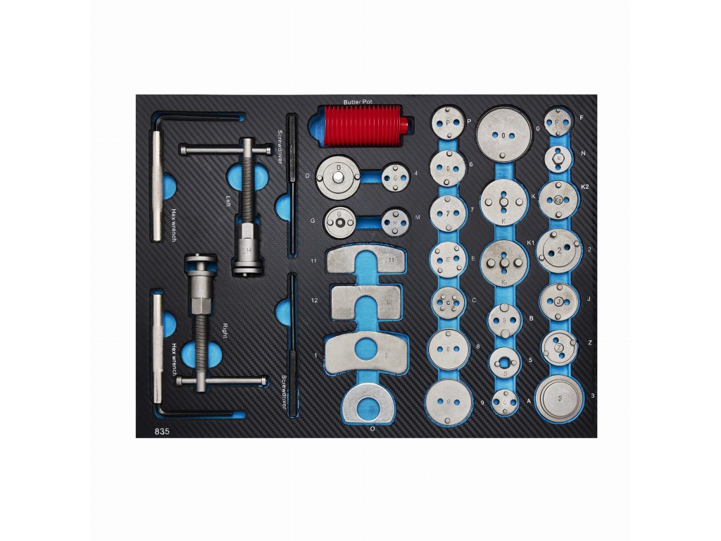 - Druhá zásuvka: sťahováky pružín a ložísk, vhodné pre rôzne typy pružín.