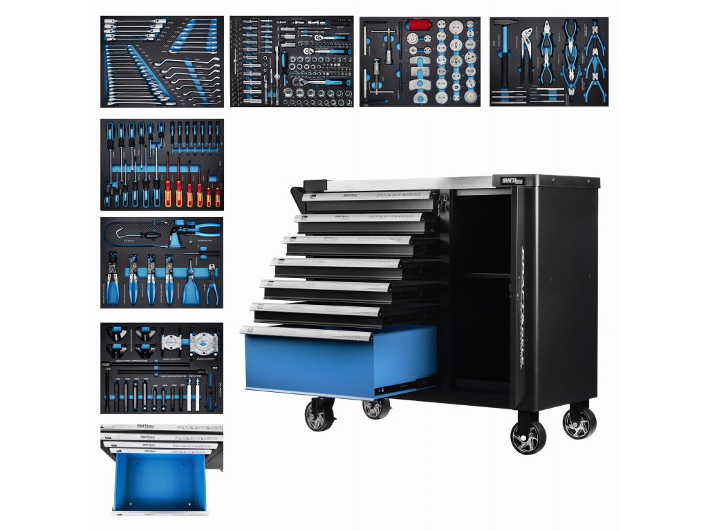 - Prvá zásuvka: široký sortiment nástavcov, nadstavcov, račňových kľúčov, bitov a adaptérov.