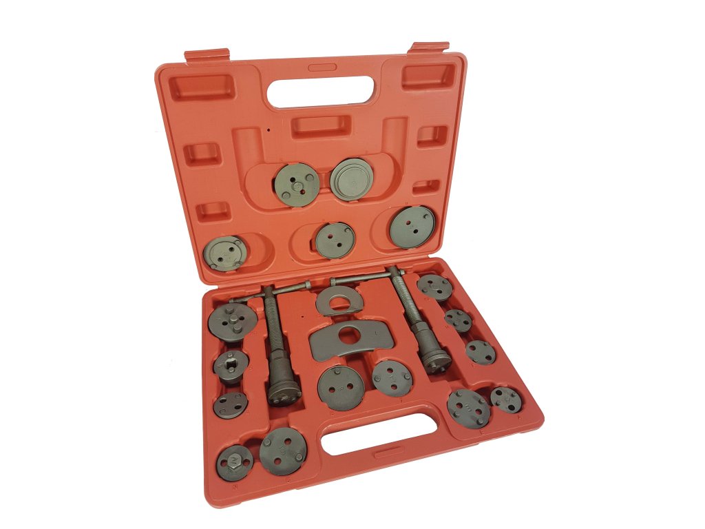 Brzdové kotúče a doštičky si môžete vymeniť aj doma. Táto praktická súprava na lisovanie brzdových piestikov vám túto prácu uľahčí a urýchli. Súprava obsahuje 21 kusov a nájde si svoje miesto v každej dielni alebo garáži. S jej pomocou môžete brzdové piesty stlačiť alebo otočiť podľa potreby. Pri vozidlách s kotúčovými brzdovými strmeňmi s integrovanou ručnou brzdou sa brzdové piesty otáčajú opačne. Na ostatných vozidlách zatlačením piestikov späť. Súprava sa dodáva v praktickom kufríku. Súprava obsahuje 2 skrutkovacie prípravky a potrebné adaptéry. Veľkou výhodou súpravy je jej univerzálnosť, a tak nájde uplatnenie v mnohých značkách osobných vozidiel.