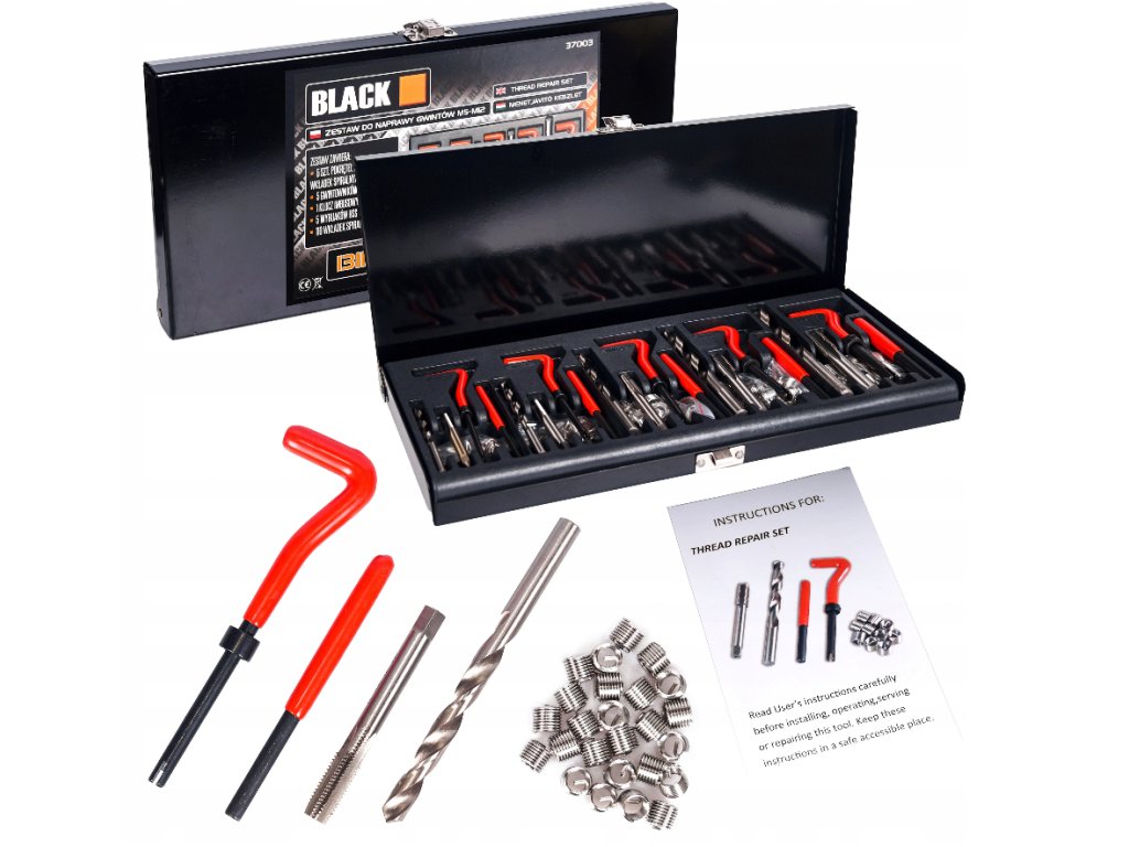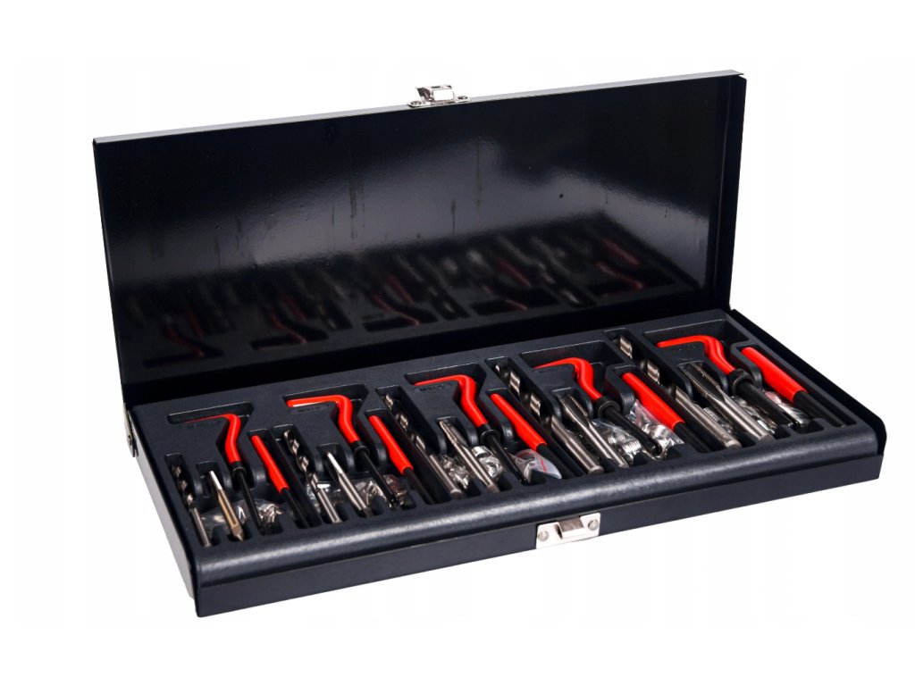 131 sada dielov na opravu poškodených, roztrhnutých závitov, pre závity s klasickým stúpaním M5, M6, M8, M10, M12.