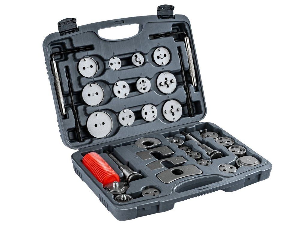 Praktický dizajn na spoľahlivú prácu v dielni aj doma. Táto súprava je ideálnou voľbou pre každého, kto potrebuje účinne a bezpečne vykonávať servis brzdových systémov. S 35 dielmi vrátane adaptérov a strmeňov je vhodná pre širokú škálu modelov automobilov.
