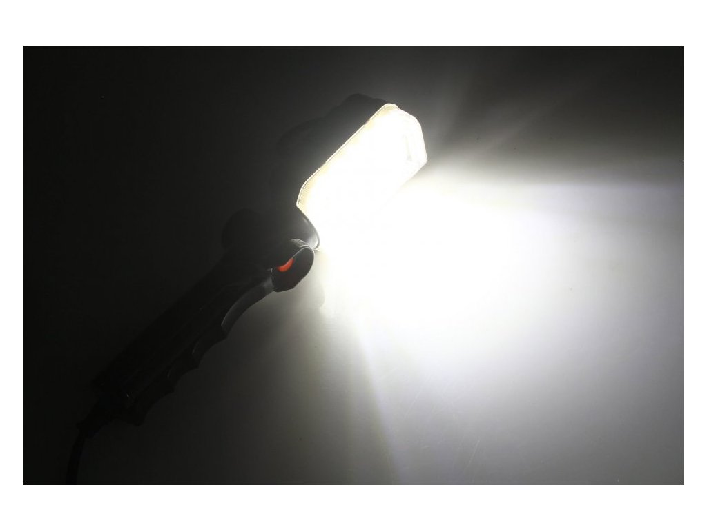 Spoľahlivá LED lampa napájaná zo siete 230 V - nepostrádateľná v dielňach, garážach, hangároch atď. Je vybavená silným magnetickým držiakom, ktorý umožňuje pripevnenie lampy na kovové povrchy. Je vybavená aj praktickým a užitočným háčikom na zavesenie lampy na vybrané miesto, otočným o 360 stupňov. Vďaka dlhému napájaciemu káblu (9 m) možno lampu používať na väčšie vzdialenosti.
