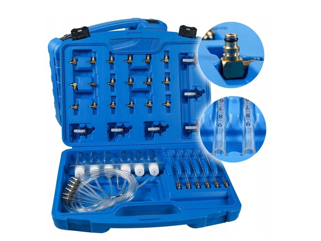 Meranie sa vykonáva porovnaním prietoku na spätnom vedení (prepade) vstrekovačov, na ktoré sa prípravok pripojí pomocou konektorov. Množstvo paliva odvádzaného prepadovým vedením musí byť približne rovnaké, v prípade veľkých rozdielov medzi hladinami v testovacích fľaštičkách je na mieste dôkladná kontrola.
