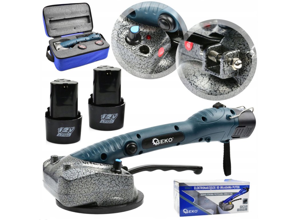 - Vďaka dvom batériám zaručuje dlhú prevádzku a silný tlak účinne udržuje dlaždice na mieste pre presné usadenie