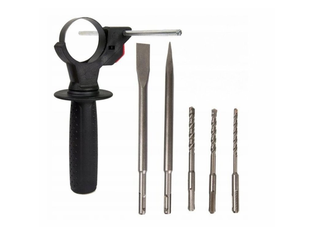 - Výkon 2500 W: Výkonný motor poskytuje vysoký výkon na efektívne vŕtanie a sekanie aj do tvrdých materiálov, ako je betón alebo murivo.