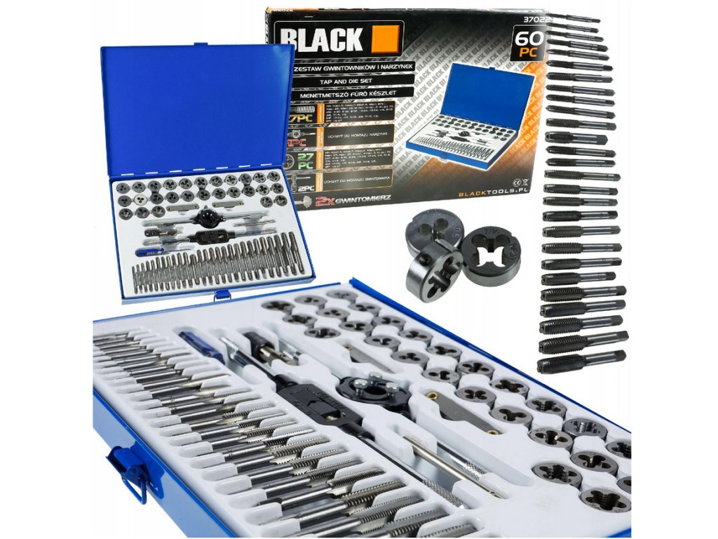 - Obsahuje 60 kusov závitníkov a očiek v metrických veľkostiach M3